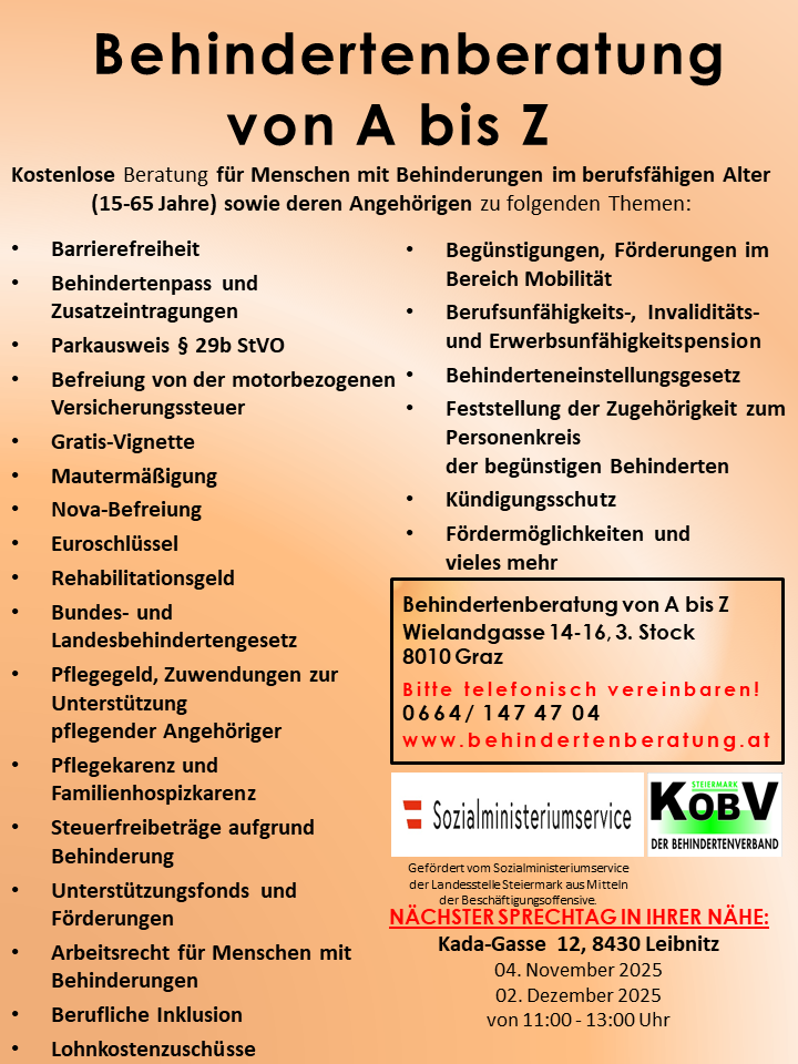Für Menschen mit Behinderungen im berufsfähigen Alter (15 – 65 Jahren) und deren Angehörige.