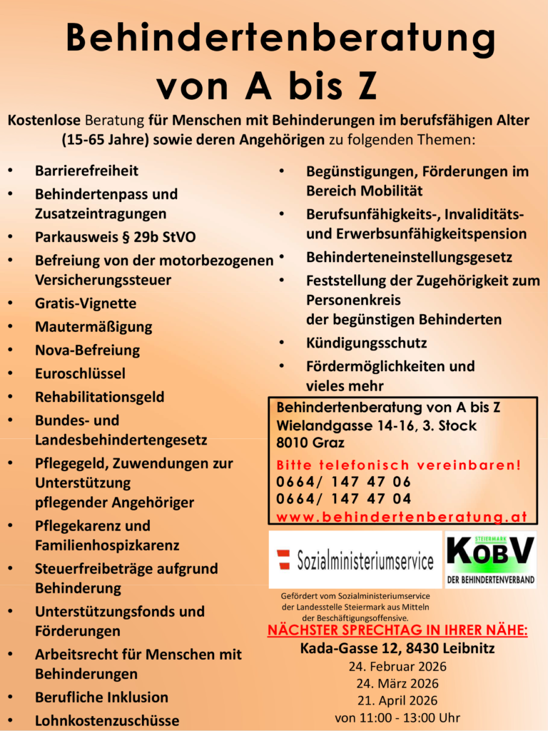 Behindertenberatung Sprechtagstermine im Frühling 2026