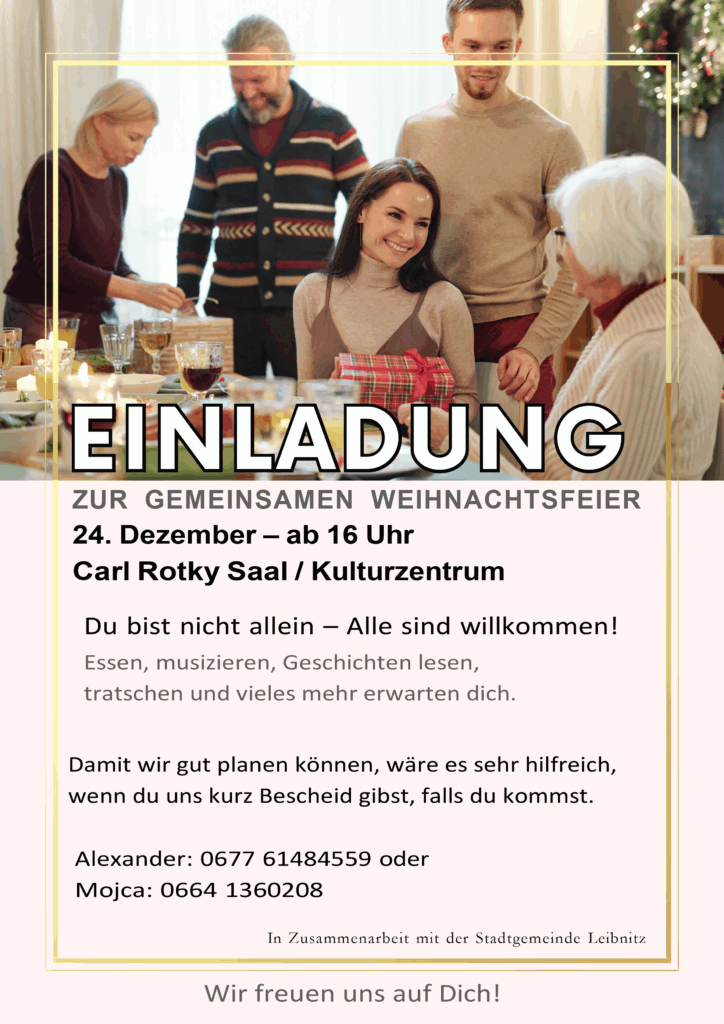 Am 24. Dezember ab 16:00 Uhr im Carl Rotky Saal / Kulturzentrum Leibnitz