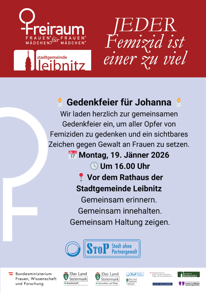 Die jüngsten Femizide in Österreich erschüttern uns zutiefst. Zwei Frauen wurden innerhalb kürzester Zeit getötet – Taten, die einmal mehr zeigen, wie real und allgegenwärtig Gewalt an Frauen ist. Unsere Gedanken sind bei den Familien, Freund:innen und allen Menschen, die um die getöteten Frauen trauern.