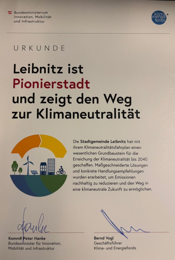 Leibnitz ist eine von mittlerweile 47 Pionierstädten in ganz Österreich, die gemeinsam vorangehen und praxistaugliche, klimawirksame Lösungen für die Energie- und Mobilitätswende sowie für die Kreislaufwirtschaft entwickeln.